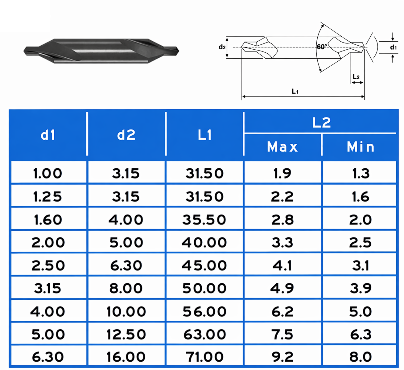 Kétoldalas központfúró D2.5