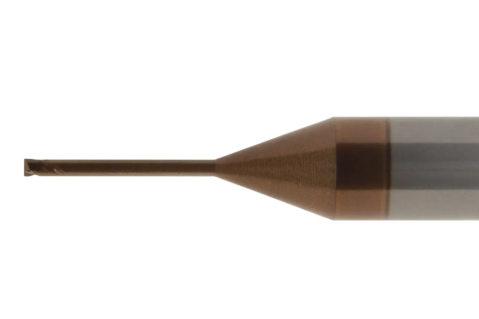 Tömör keményfém (VHM) szármaró, D=0.2 mm, 2 élű, sarkos kivitel, nyakalással.