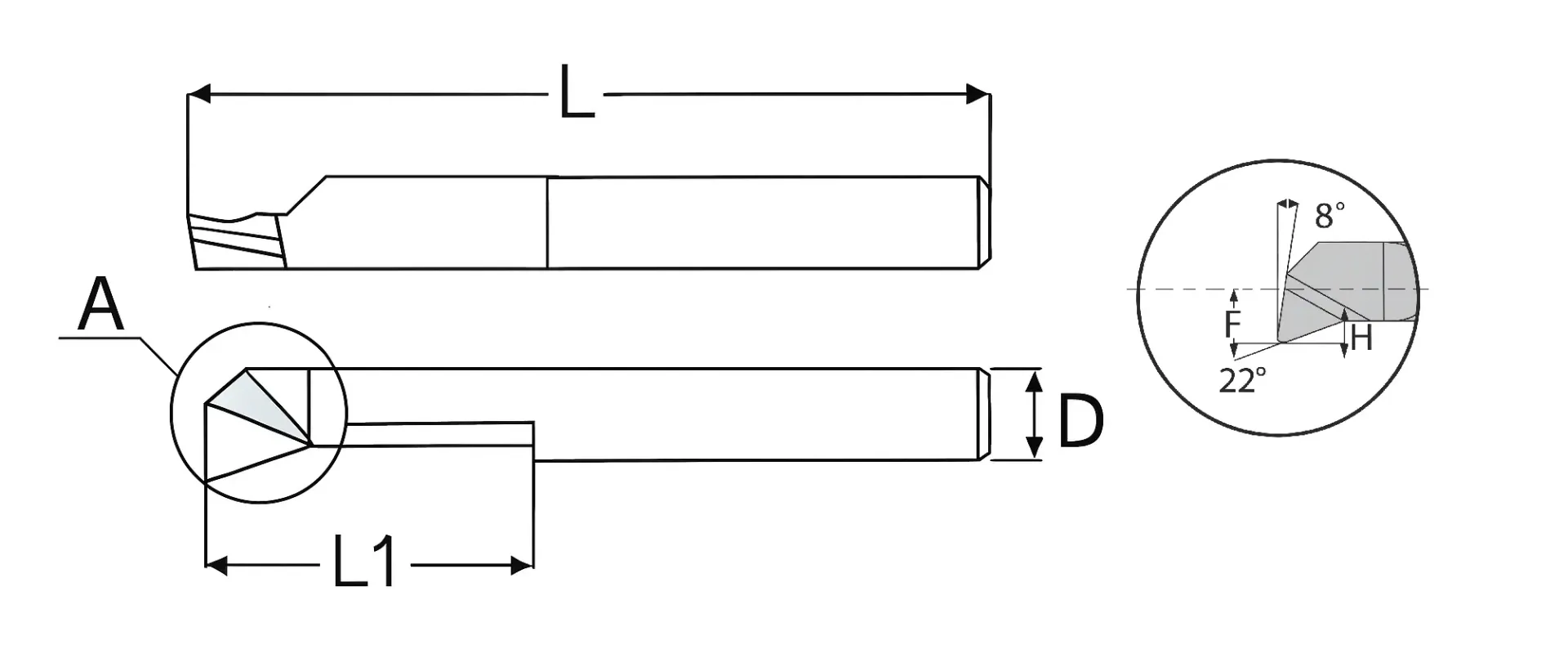 Micro tömör keményfém furatesztergló MPR6 R0.2 L22