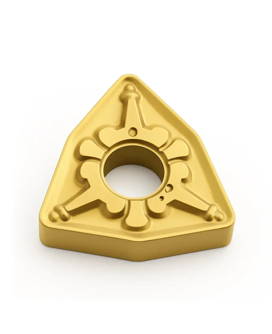 CVD-bevonatos keményfém lapka félsimító és közepes esztergálási műveletekhez. A TM forgácstörő geometria kiegyensúlyozott forgácsképzést és stabil forgácsolást biztosít különböző megmunkálási feltételek mellett.